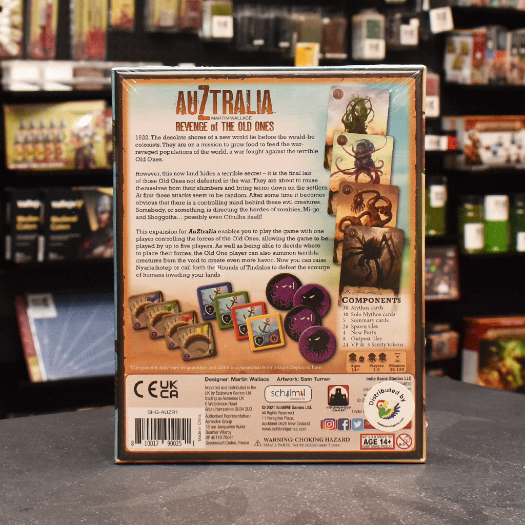 AuZtralia: Revenge of the Old Ones enables you to play the game with one player controlling the forces of the Old Ones. This allows the game to be played by up to five players. As well as being able to decide where to place their forces, the Old One player can also summon terrible creatures from the void to create even more havoc. Now you can raise Nyarlathotep or call forth the Hounds of Tindalos to defeat the scourge of humans invading your lands.