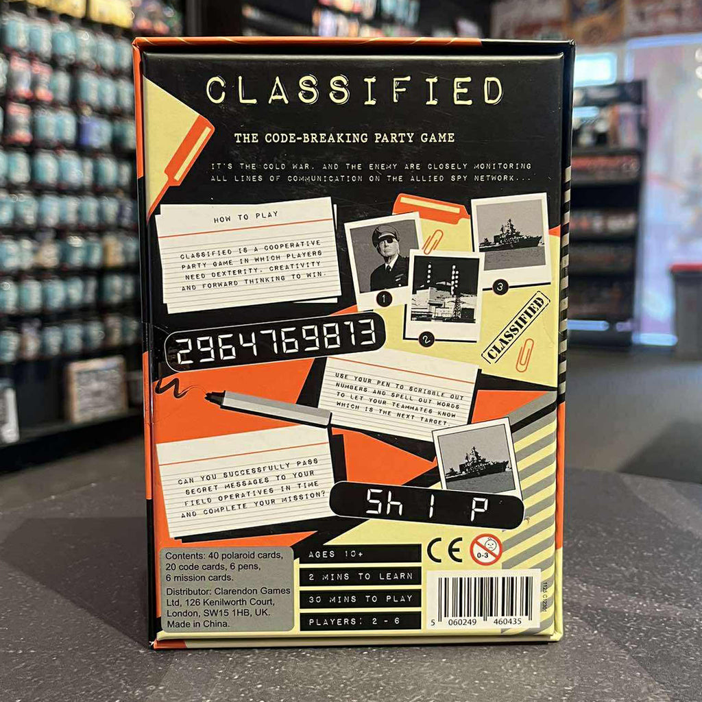 Classified is a cooperative, code-breaking party game in which you need deduction, creativity and forward thinking to win. Which photo shows the next target? Scribble out numbers and spell words to give your allies clues. Can you pass secret messages to your field operatives and complete your mission and outsmart the enemy?