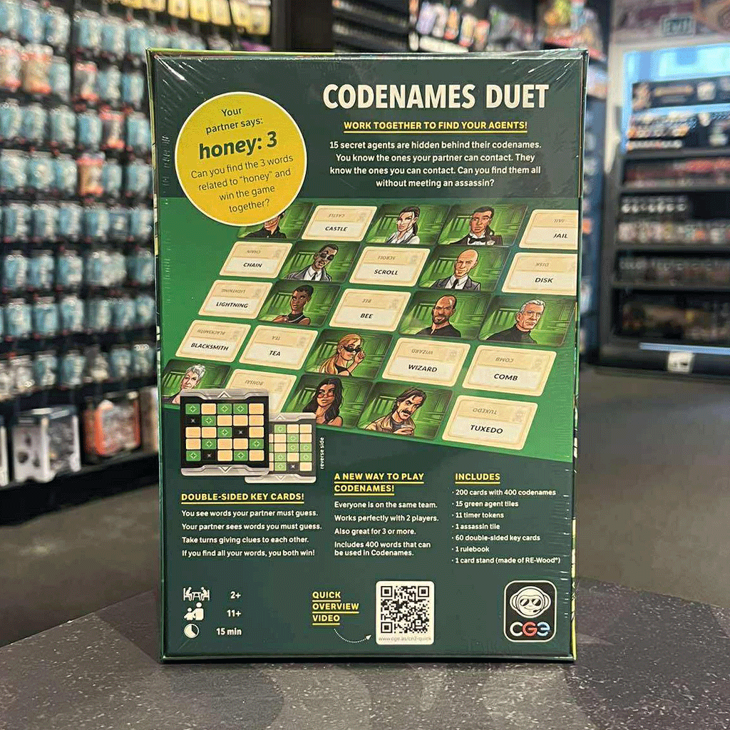Codenames Duet keeps the basic elements of Codenames — give one-word clues to try to get someone to identify your agents among those on the table — but now you're working together as a team to find all of your agents.