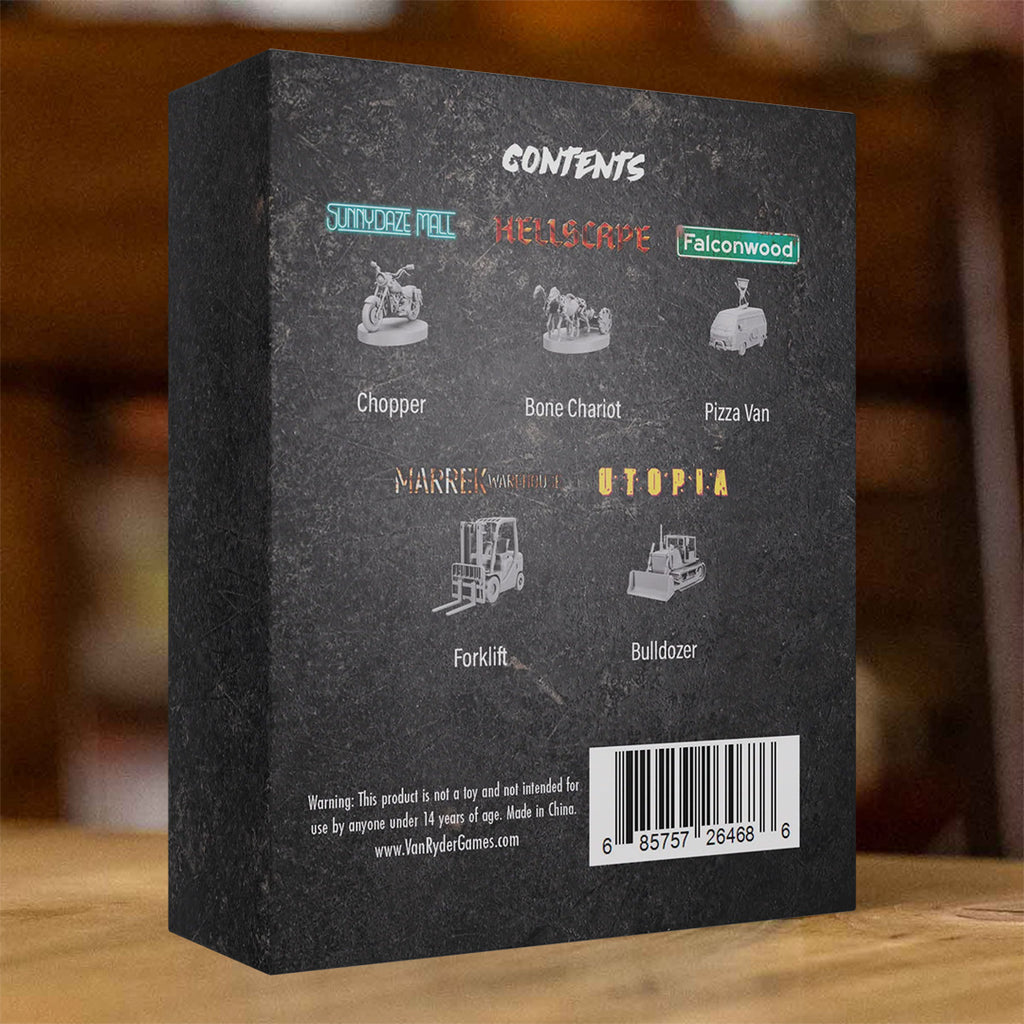 Includes vehicle miniatures for the Series 3 Feature Films – these vehicle minis can replace the tokens that come with the Feature Films and add a new level of immersion while playing Final Girl.