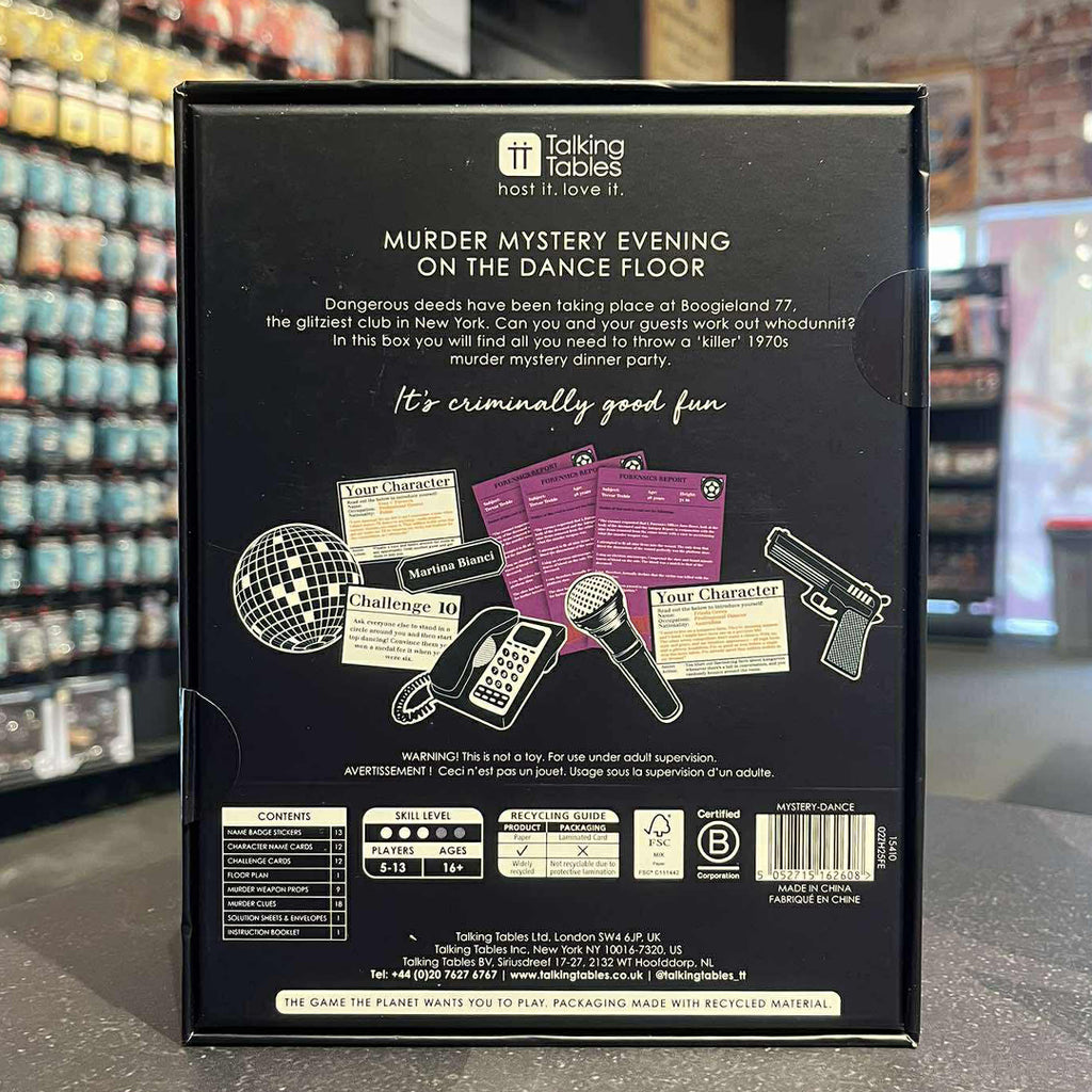 Disco meets danger in this compact murder mystery game set. With a glittering storyline, funky characters and deadly secrets, Murder Mystery on the Dancefloor is the perfect small box game for throwing a retro-themed evening full of laughs and surprises.