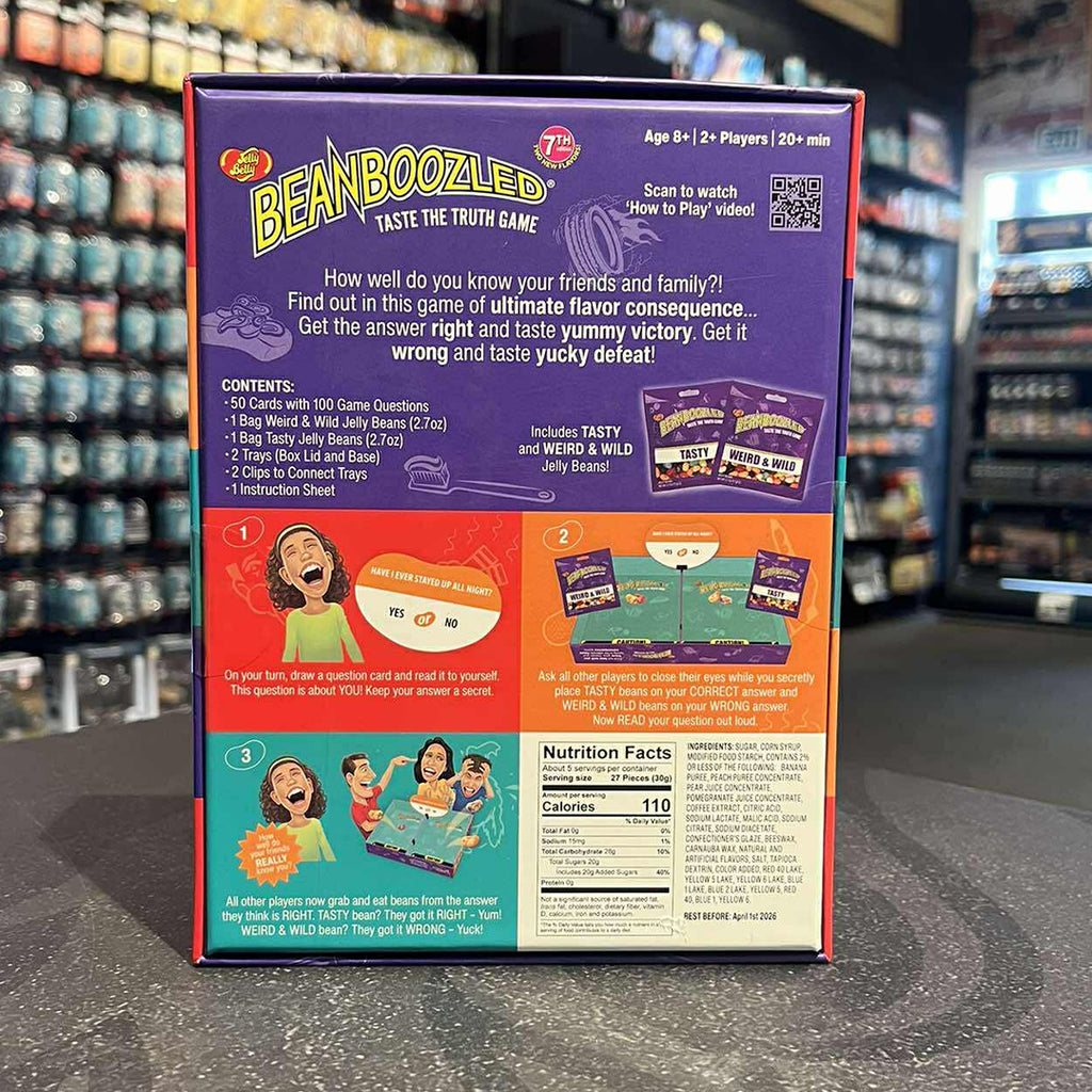 Put your family and friends to the ultimate test with the new BeanBoozled Taste the Truth Game! Discover the truth through the taste of Jelly Belly jelly beans. Find out who knows you best by asking a series of ‘this or that’ and ‘true or false’ questions about yourself. Guess wrong and brace yourself for Jelly Belly’s Weird & Wild flavors; guess right and enjoy the deliciousness of Jelly Belly’s Tasty beans. BeanBoozled’s Taste the Truth Game raises the stakes for any game night. Will the black jelly bean reveal Licorice or Burnt Rubber?
