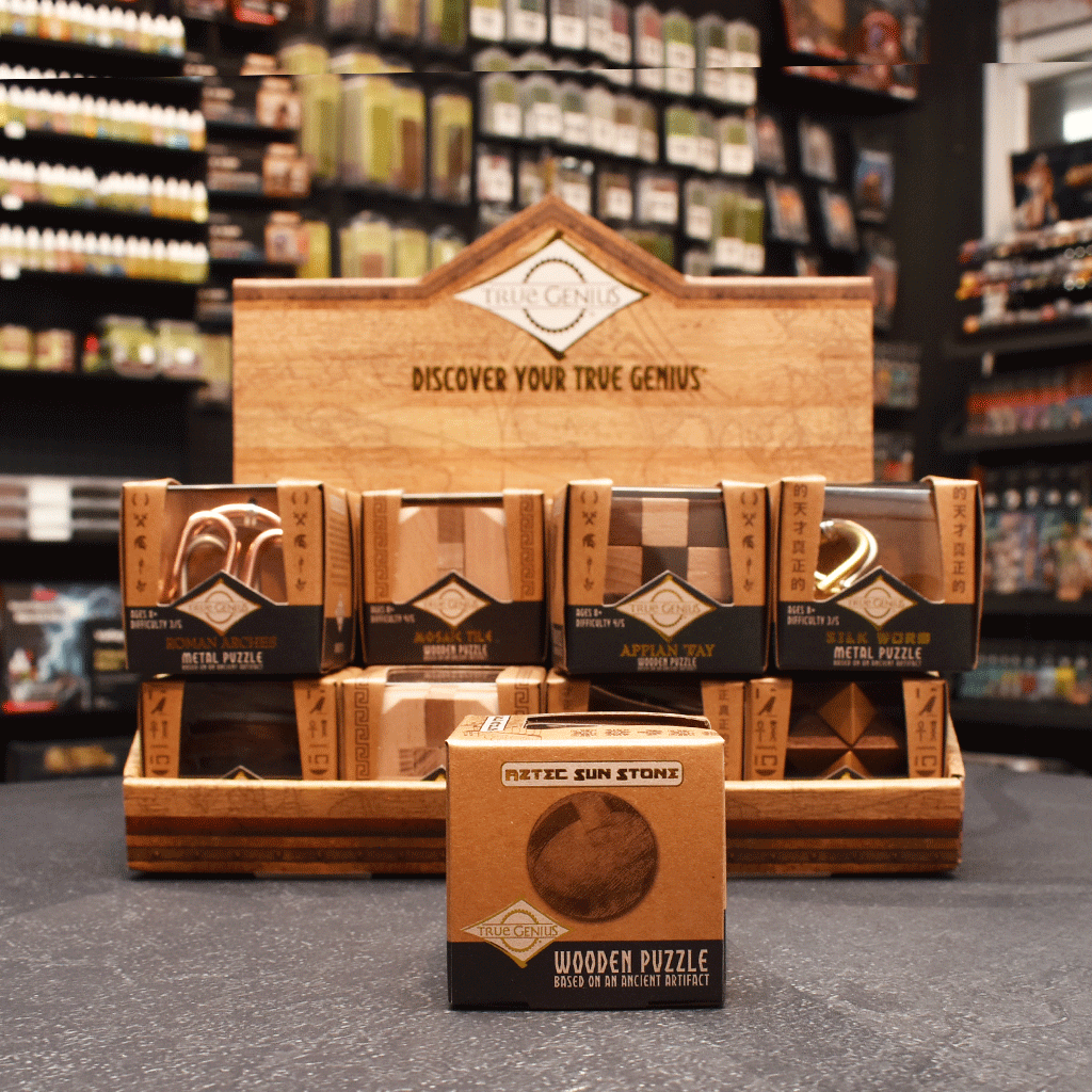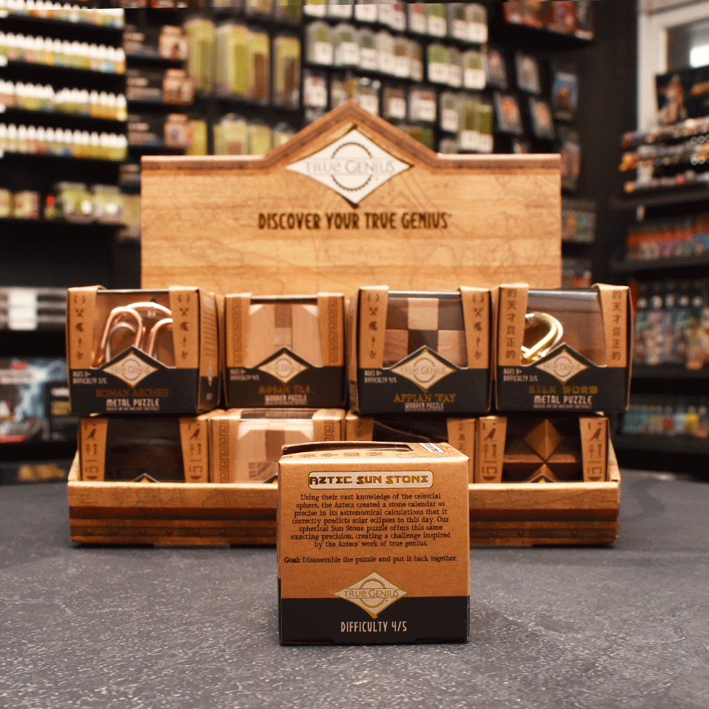 Unravel the mysteries of ancient Aztec craftsmanship with the Aztec Sun Stone, a beautifully designed wooden sphere puzzle. This intricate brainteaser challenges you to completely disassemble its 12 interlocking pieces and then reassemble them to recreate the perfect sphere. With a difficulty rating of 4/5, it’s a test of patience, precision, and problem-solving skill.
