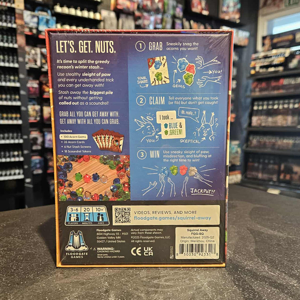 You and your ragtag crew of squirrely thieves just pulled off the biggest heist of your bushy-tailed lives, grabbing a whole winter's worth of acorns back from the clutches of a greedy raccoon. Now you're at the rendezvous point, up to your cheeks in nuts, and it's time to split up the haul. To get away with more than your fair share, it'll take sneaky sleight-of-paw and every underhanded trick you can think of. Will you successfully scurry off with the biggest pile of acorns, or will another rogue rodent call you out as a scoundrel?