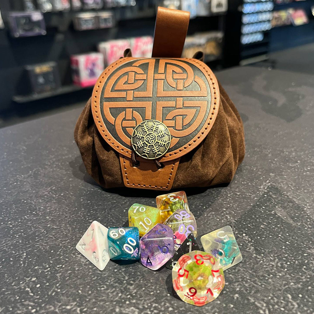 Forged for adventurers worthy of the mead hall, this rugged faux leather dice pouch channels the spirit of the North. Embossed with a powerful runic emblem and crafted to endure the harshest campaigns, it’s the perfect accessory for any shield-bearer ready to roll fate.