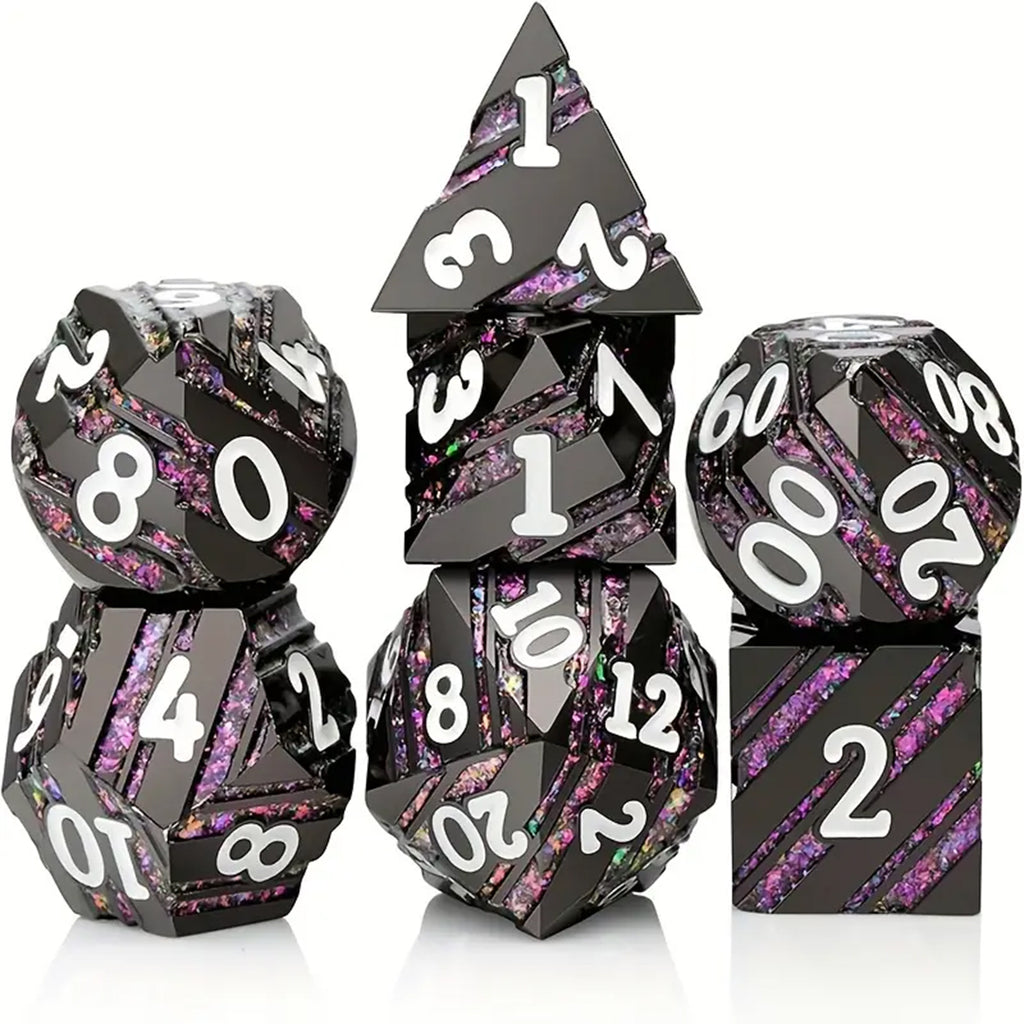 Eldritch Power Stone - 7 Piece Metal Polyhedral Dice Set & Dice Case