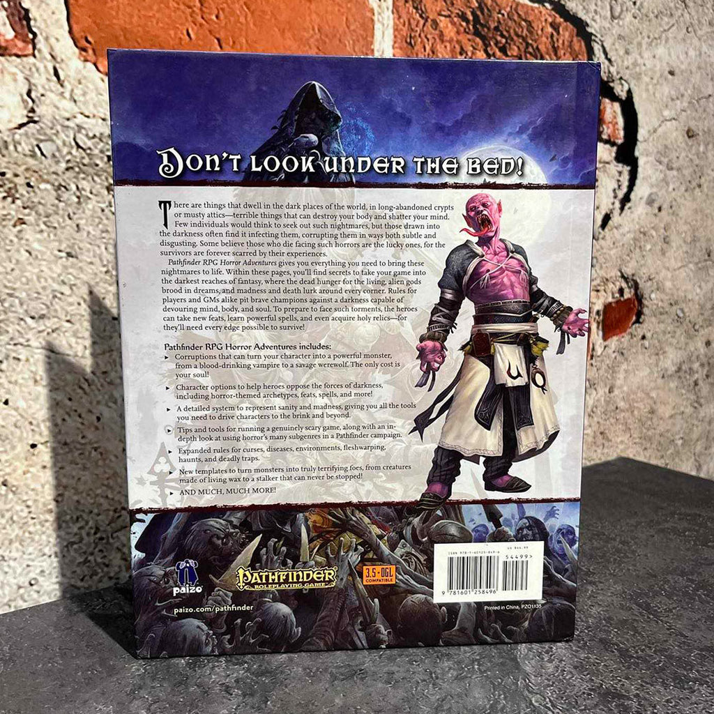 Pathfinder RPG Horror Adventures gives you everything you need to bring these nightmares to life. Within these pages, you'll find secrets to take your game into the darkest reaches of fantasy, where the dead hunger for the living, alien gods brood in dreams, and madness and death lurk around every corner. Rules for players and GMs alike pit brave champions against a darkness capable of devouring mind, body, and soul. To prepare to face such torments, the heroes can take new feats, learn powerful spells, and even acquire holy relics—for they'll need every edge possible to survive!