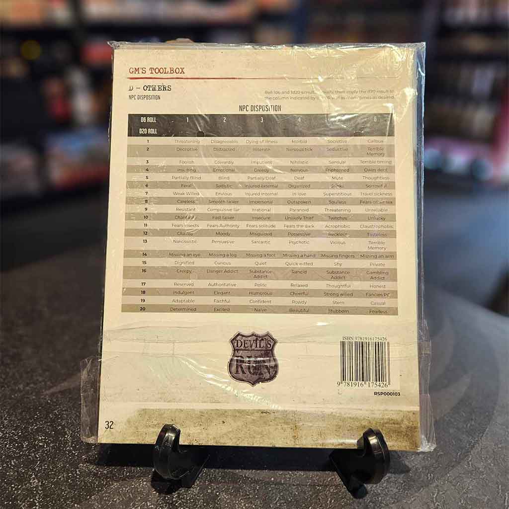 • Additionally, there is a 32-page booklet that includes a number of tools, tables and lists that will provide inspiration and suggestions for running an even better game of Devil’s Run.